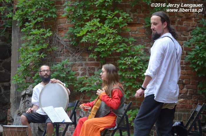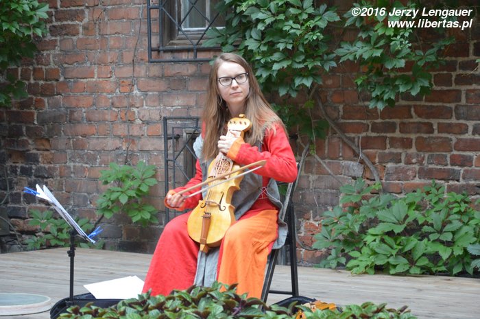 Spóźniłem się, więc muszę trochę pozmyślać, konfabulować. Jestem przekonany, że te parę minut maruderstwa, niepunktualności, zaniedbania to strata nieodżałowana. Ubrane w pomarańcz i jasną delikatną czerwień dziewczę z pewnością w tym czasie napisało do mikrofonu odpowiedni prolog o dawnej muzyce Europy. Przekonanie absolutnie się później potwierdziło. Przy zmianie instrumentów członkini Stowarzyszenia Rekonstruktorów kultury, sztuki i obyczajów średniowiecza wtrącała długie, aczkolwiek nie takie, żeby zanudzić słuchaczy, dygresje o pochodzeniu, wykonaniu, rekonstrukcji i nazwach instrumentów, na których grała. Pewnie wstęp do koncertu wyjaśniał także zestaw utworów dzisiejszego koncertu.