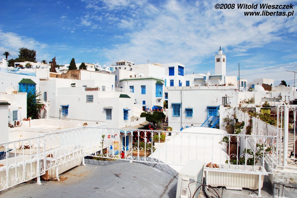 A long time ago it was a residence of Abou Said ibn Khalef ibn Yahia Ettamini el Beji - the one the city owes its name to. Previously it was called Jabal el-Menar. In my opinion, it is the city worth visiting while being in Tunis, at least for the fact that it is the place of gathering for many artists. This is what Paul Klee wrote after his first contact with the city: Sidi Bou Said, the town that we first saw from the ship. Drove all the way up... The town lies so beautifully up there and looks far over the sea... Stopped by a garden gate and began a watercolor sketch.