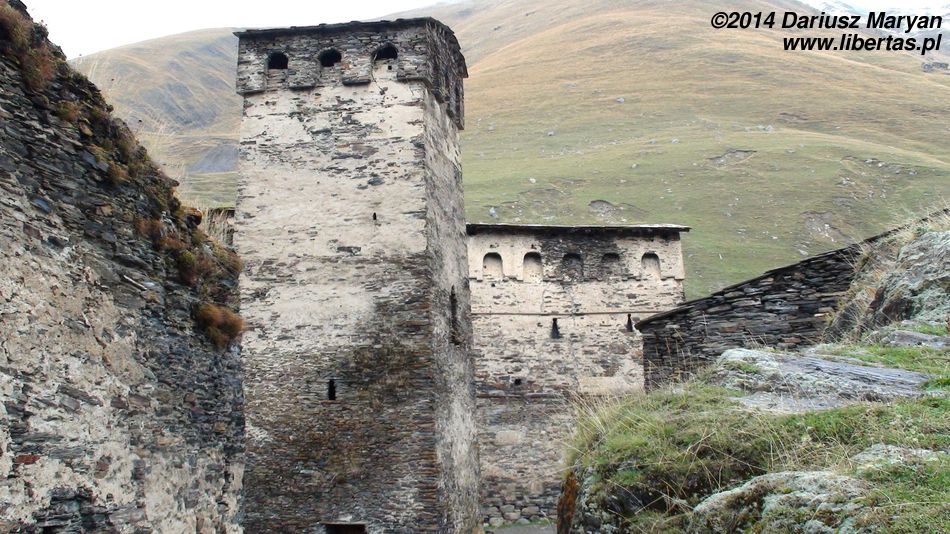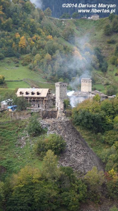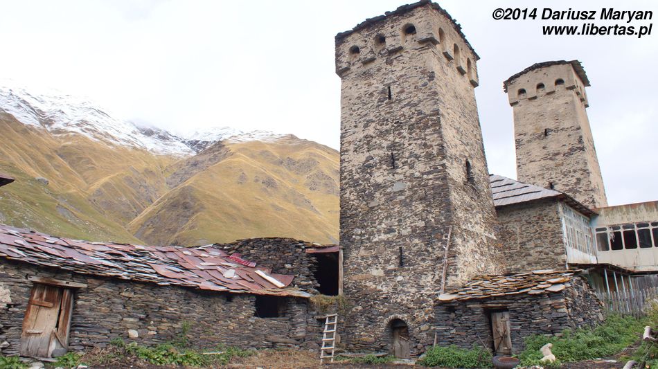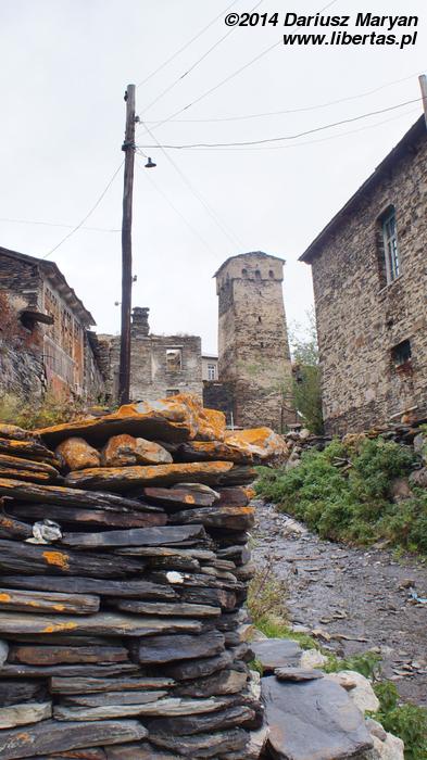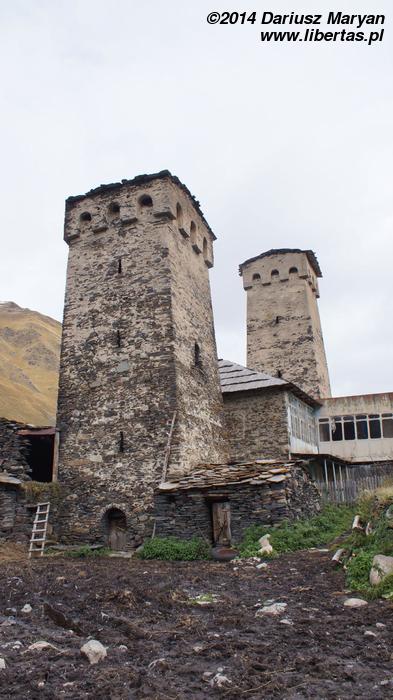 Do Mestii wróciliśmy przed wieczorem. Tego dnia chcieliśmy koniecznie zobaczyć jeszcze, jak wygląda taka wieża w środku. Nie zwlekając więc, udaliśmy się do wypatrzonej wcześniej wieży udostępnionej dla turystów.