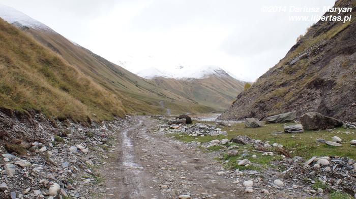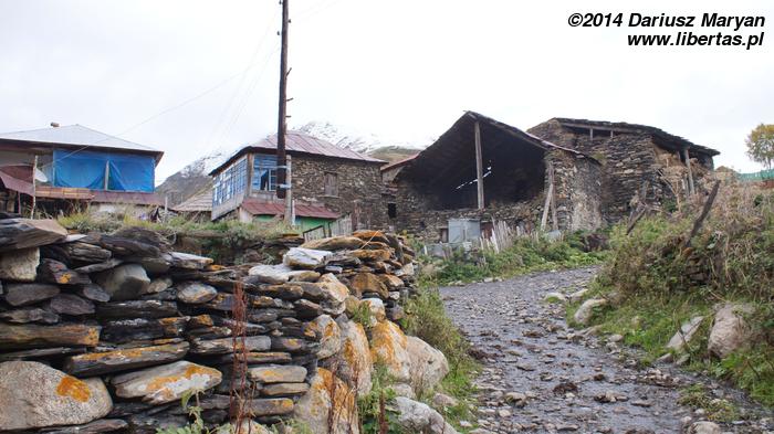 Uszguli to podobno najwyżej położona stale zamieszkała wioska w Europie (o ile założymy, że Gruzja leży w Europie). W miesiącach zimowych, gdy na drogach zalega śnieg, nie można się do niej dostać. Zostaje odcięta od świata na kilka miesięcy. Ale nawet latem, kiedy panują dobre warunki do podróżowania, nie każdy pojazd może tam dotrzeć. Pomimo iż od Mestii to w sumie niewiele kilometrów, droga tam prowadząca jest w koszmarnym stanie. Dystans około 40 km pokonuje się w ponad trzy godziny. Po drodze co jakiś czas widać prace budowlane, lecz wbrew temu, co sugerowałaby logika, nie są one prowadzone od punktu A do punktu B, lecz w różnych częściach jednocześnie. I tak mamy kawałek dobrej drogi, za chwilę kompletne pobojowisko, dalej jakiś walec ubija kamienie na odcinku 100 metrów i znów jakieś leje. Ponadto, jeżeli droga jest akurat przejezdna w jedną stronę, to nie znaczy, że w drodze powrotnej też tak będzie. Może się na przykład zdarzyć, że jakaś kupa żwiru zostanie bezmyślnie wysypana na środku drogi przez jakiegoś pracownika i tak już zostanie, bo inni tego dnia już mają fajrant i nie zagospodarują jej tak, jak należy. Wtedy zaczyna się zabawa i jazda na dwóch kołach.