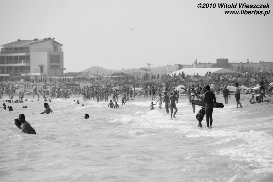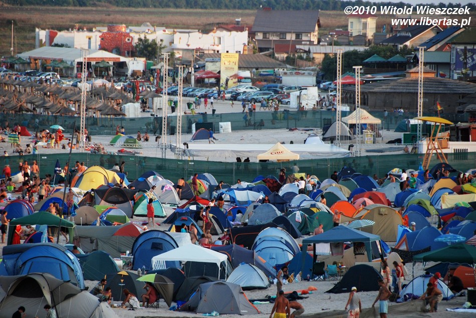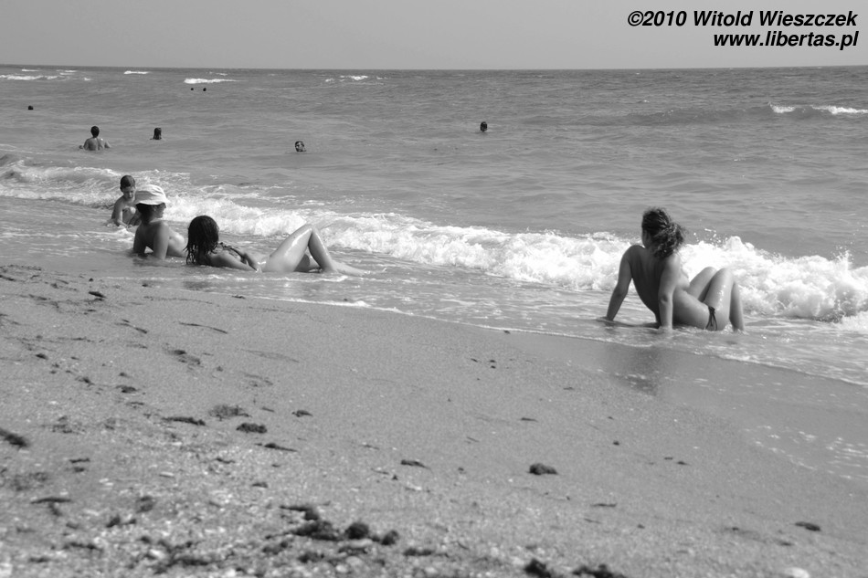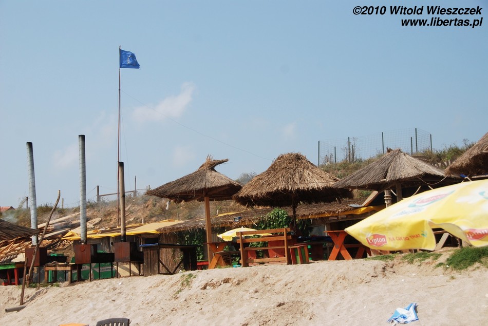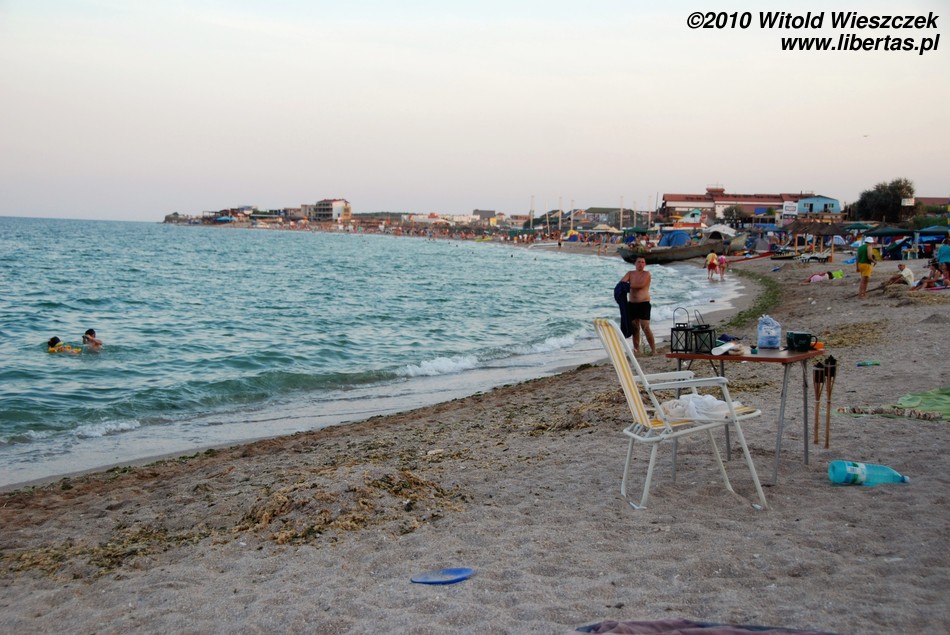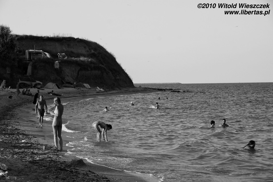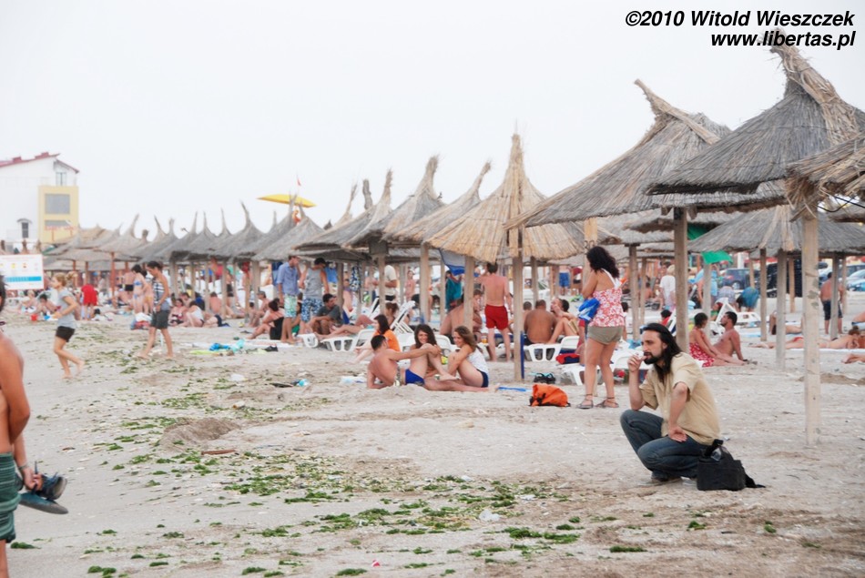 Dlatego, moim skromnym zdaniem, plaża w Vama Veche nie jest typową plażą dla nudystów, tak jak całe Vama Veche nie jest typową nadmorską miejscowością turystyczną. Na plaży są porozbijane namioty, co już jest widokiem dość niecodziennym. Przez całe pięć dni nie usłyszałem żadnej dysko-techno rąbanki! Widziałem za to jak ludzie siedzieli sobie na plaży z gitarami i wspólnie muzykowali. W knajpach wyraźnie dominowała muzyka bluesowa, folkowa, rockowa... czasem ostrzejsza, cięższa... różna, w każdym razie żadne pitupitu plastikowo-gołych wokalistek bez głosu. Nigdzie nie było widać (w każdym razie ja nie zauważyłem) wytapetowanych dziewczyn w minióweczkach i na obcasach. Dziewczyny były naturalne, praktycznie bez makijażu albo z makijażem nierzucającym się w oczy (no chyba, że ostentacyjnie czarnym i mrocznym). Wśród osób od nas starszych zdarzali się również długowłosi panowie po pięćdziesiątce. Raz widziałem jak brzegiem spacerowała sobie trzypokoleniowa rodzinka, babcia z dziadkiem, ich córka i dwoje wnucząt. W pewnym momencie wszyscy zrzucili ubrania i wskoczyli do wody, by po kilku minutach wyjść, ubrać się i iść spokojnie dalej! Krótko mówiąc atmosfera jedyna w swoim rodzaju.