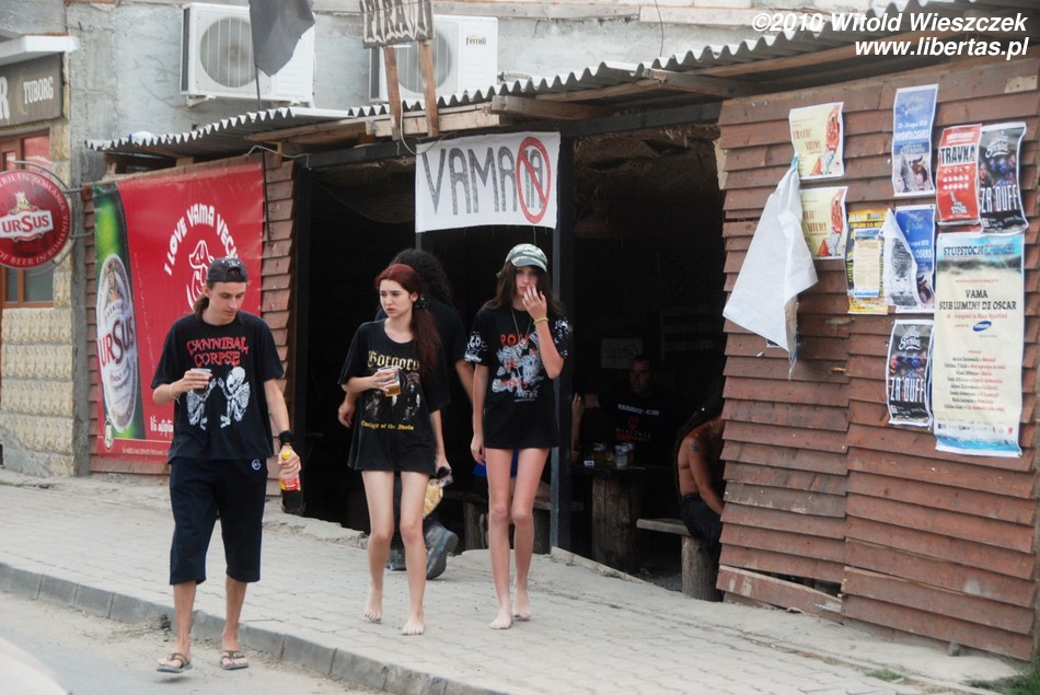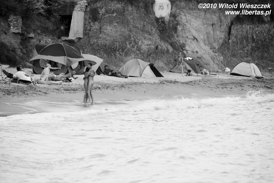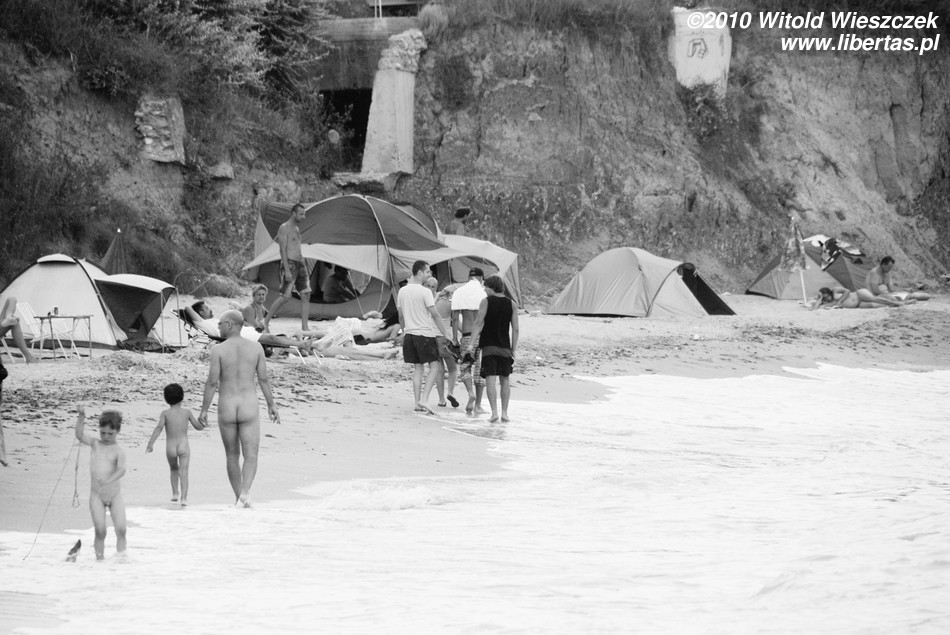 Do czego zmierzam? Najczęściej na plażach, ponieważ są to miejsca publiczne, całkiem rozbierać się nie wolno (w Polsce zdarza się nawet, że straż miejska wlepi mandat za opalanie toples), w związku z tym powstają plaże dla nudystów z których korzystają ci, którzy wolą opalać się nago, a na zwykłych plażach mogliby być solą w oku tekstylniarzom. Czym te plaże różnią się od plaży w Vama Veche? Jak już pisałem Vama Veche nawet w czasach komunistycznych miało swoistą (nieoficjalną oczywiście) autonomię, rządziło się jakby trochę innymi prawami. Ludzie, którzy tutaj przyjeżdżają, nie stanowią przekroju społeczeństwa. Wyraźnie dominują ludzie długowłosi, dziwnie ubrani, przypominający trochę towarzystwo woodstockowe, raczej tacy, którzy normalnie z tłumu się wyróżniają niż w nim toną. Tacy ludzie nie potrzebują plaży dla naturystów, by czuć się swobodnie! Ta plaża nie powstała na zasadzie, że było pusto, więc przyszły trzy osoby i wbiły tabliczkę plaża nudystów. Po prostu przyjeżdżali tu ludzie, którzy mając siedemnaście (albo siedemdziesiąt) lat, stojąc na brzegu morza nie zastanawiają się, czy jest to plaża dla nudystów, czy nie, tylko wskakują na golasa do wody (bo niby w co by się ubrali po wyjściu z wody?).