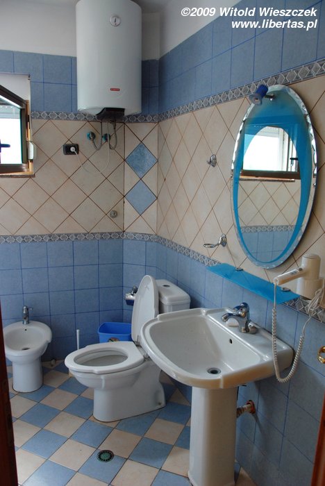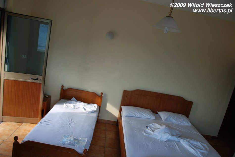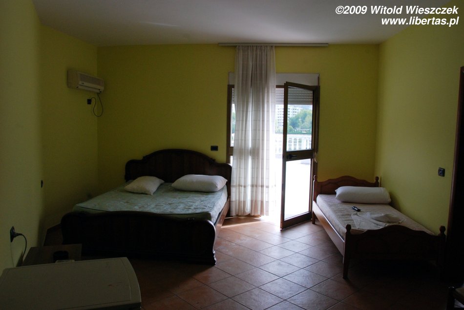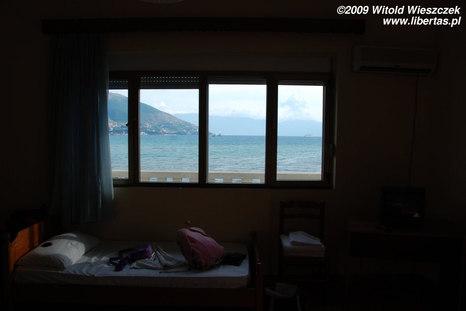 Because Vlore is a tourist resort, there are plenty of hotels and new ones are springing up like mushrooms. Right by the port, there is recommendable Bologna Hotel. Richer tourists can find more impressive but also more expensive hotel right next to it. We paid 30€ for a room in Bolognia Hotel. I think that it was a reasonable price bearing in mind that the room was spacious with a big double bed, two smaller ones, bathroom, air-conditioning, TV set and what is the most important - a big window with a view to the sea! We checked also another room, next to ours, with a big terrace maybe for playing football matches on it. The same price!