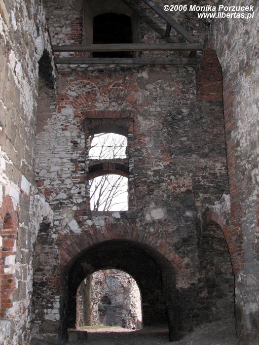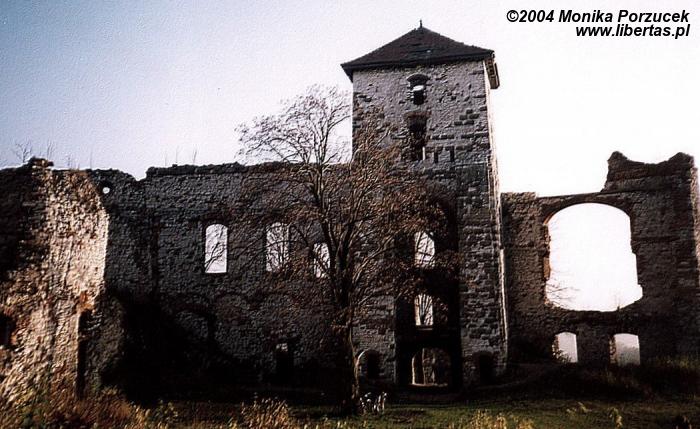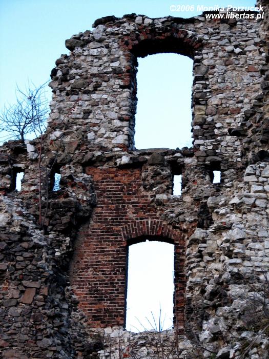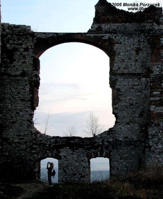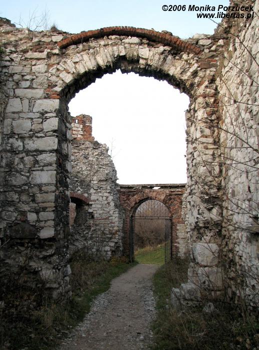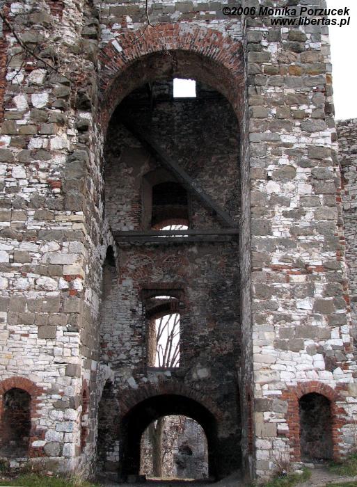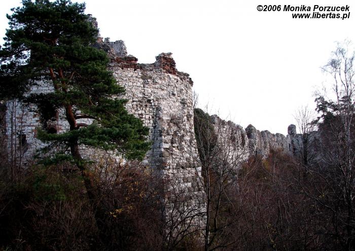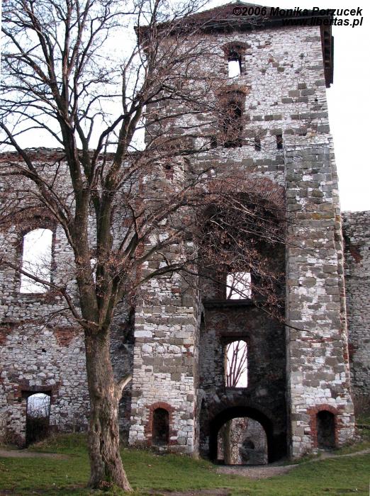 Rozległe ruiny zamku pozwalają nam wyobrazić sobie jak wspaniały i wielki musiał być w czasach swojej świetności. Twierdza otoczona była murem, posiadała trzy okrągłe wieże i jedną kwadratową, broniącą wjazdu. Zamek podobno konkurował z Wawelem. Przed bramą znajduje się fosa, przez którą przerzucano zwodzony most. Wejście prowadzi przez barbakan a następnie oryginalną, długą na 60 metrów sień. Do wewnętrznych zakamarków wprowadza nas przejście pod wysoką wieżą zamkową. Jeśli podniesiemy głowę do góry zobaczymy wysoko zawieszone pozostałości schodów - pewnie kiedyś pozwalały wejść na wieżę. We wschodnim skrzydle zamku mieściły się niegdyś apartamenty reprezentacyjne a położona w północno-wschodnim narożniku wieża nazywana jest „Dorotką”, wzięła ona swoją nazwę podobno od imienia więzionej w niej niewiasty.
