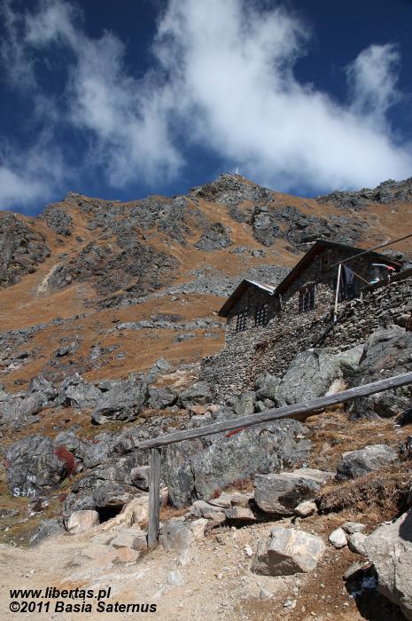 Zaraz po obfitej kolacji i dwóch szybkich kolejkach gorącej czekolady wskakujemy do śpiworów. Jest stosunkowo wcześnie, ale spadająca szybko temperatura – we wnętrzu naszego pokoju jeden stopień poniżej zera – nie daje specjalnego wyboru. Zmęczeni z zadowoleniem nieruchomiejemy w ciepłych, puchowych kokonach. W myślach coraz wyraźniej zaczyna się nam rysować Laurebina – przełęcz w stronę której ruszymy z samego rana. Spotkania z tą zawieszoną na 4610 metrach, ostatnią na naszej tegorocznej trasie tak pokaźną przeszkodą, już od kilku dni nie możemy się doczekać. Zasypiamy szybko i głęboko.