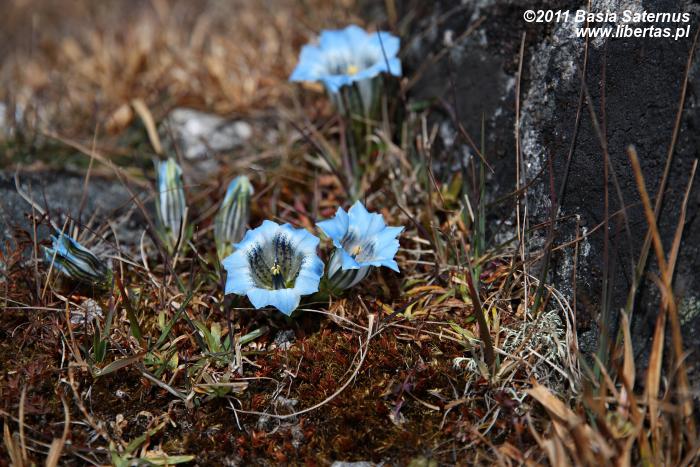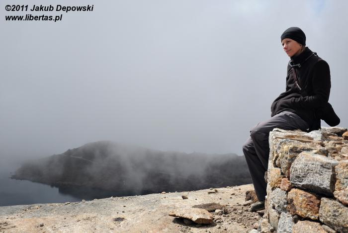 Na przełęczy Laurebina6 meldujemy się przed dziewiątą. Jest na tyle wcześnie, że jeszcze długo nie będziemy musieli myśleć o czekającym nas tego dnia wielogodzinnym marszu w dół. Zrzucamy plecaki, ponownie chwytamy w dłonie aparaty i staramy się uwiecznić przynajmniej fragment otaczającego nas piękna. Jesteśmy zupełnie sami. Absolutnego spokoju tego niezwykłego miejsca nie zakłóca nic prócz delikatnego szmeru budzącego się leniwie wiatru. Dopiero po kilkunastu minutach w oddali zaczynają majaczyć niewyraźne, nieliczne sylwetki zaopatrujących okolicę tragarzy. Nad peletonem turystów nasza przewaga jest znacznie większa. Gdy za jakiś czas pierwsi z nich zakończą wspinaczkę, już dawno na przełęczy nas nie będzie.