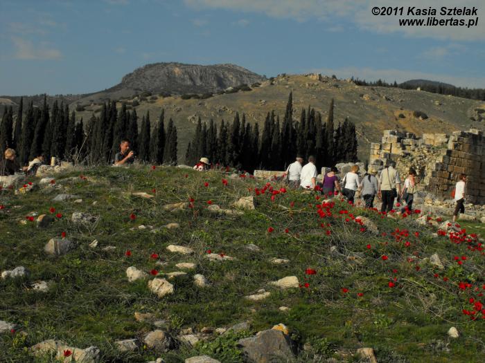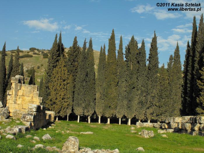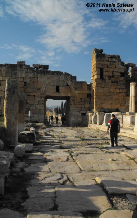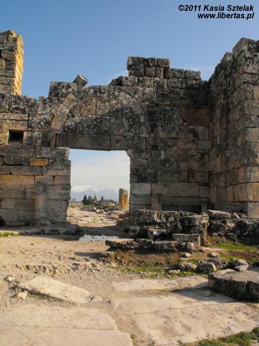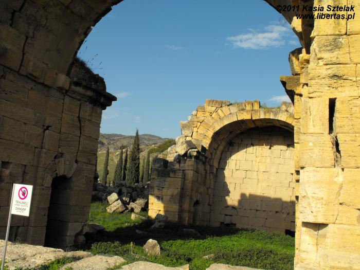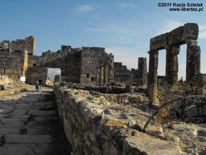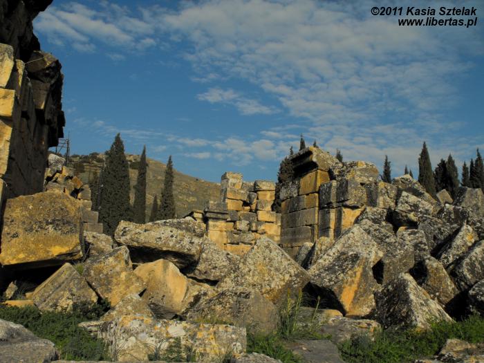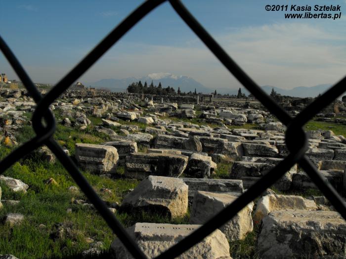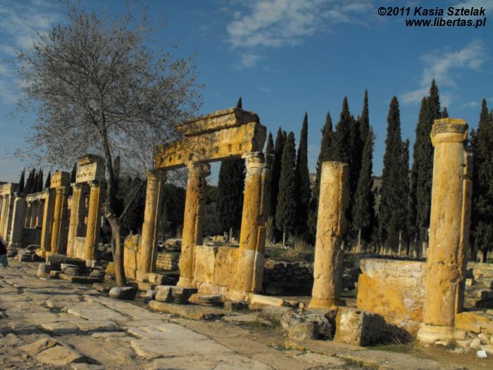 To tutaj przybywali starożytni Rzymianie, a później Bizantyjczycy, aby podratować swoje zdrowie. To starożytne miasto położone jest na zboczu góry Cökelez. Źródła podają, że zostało założone prawdopodobnie przez króla Pergamonu Eumenesa II na pocz. II w. p.n.e. Nazwa miasta pochodzi od imienia Hiery - żony jednego z królów, któremu oddawano cześć w Pergamonie jako herosowi. Ruiny miasta robią niesamowite wrażenie i znów nieprawdopodobne wydaje mi się, że przetrwało tyle wieków. Czuć tutaj jakby ducha jego mieszkańców ze względu na wszechobecne grobowce. Po drodze mijamy ogromną nekropolię, zapewne tych, którym nie udało się ozdrowieć w sanatorium jak i tych, którzy zginęli przez liczne trzęsienia ziemi jakie nawiedzały przez wieki Hierapolis. W roku 1354 silne trzęsienie ziemi ostatecznie zniszczyło miasto, a jego mieszkańcy opuścili je na zawsze.