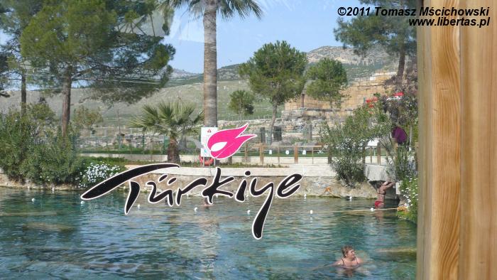Teren Pamukkale obecnie objęty jest ochroną i tworzy park narodowy, który wpisany został na listę światowego dziedzictwa przyrodniczego UNESCO. Wprawdzie, jakiś czas temu, w górnej części budowano hotele, a to powodowało wysychanie źródeł wody termalnej, ale szczęście władze tureckie w porę zorientowały się, że ta sytuacja powoduje postępującą degradację środowiska i zakazały dalszej budowy hoteli,a te zbudowane kazano rozebrać. Obecnie pozostał tam jeden motel na terenie którego wśród pięknych drzew i krzewów znajduje się święta sadzawka nazywana też Basenem Kleopatry (kąpiel w kosztuje ok. 15 euro). Postanawiamy więc odpocząć wśród przyjemnego chłodu i kwitnących krzewów, zamawiamy chłodne piwko i zbieramy siły na dalszy spacer.