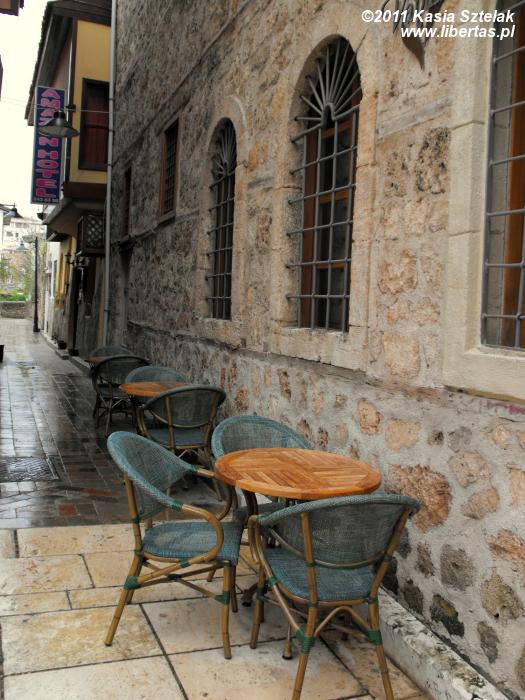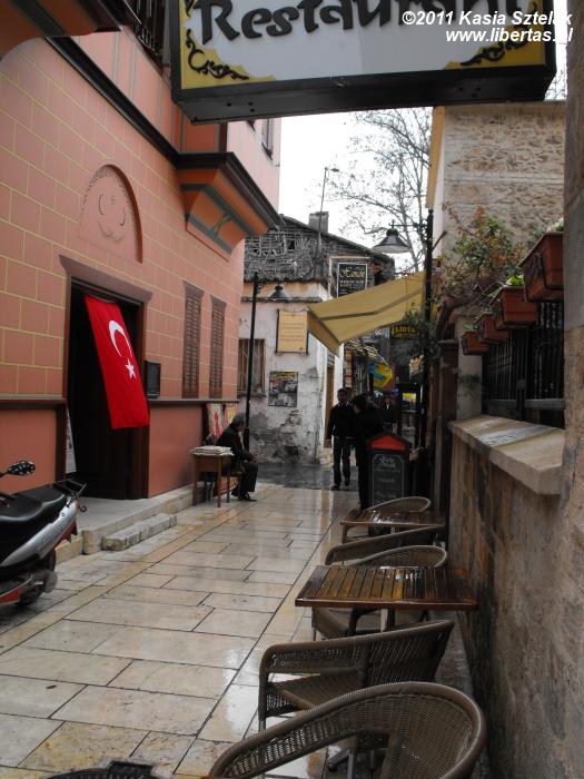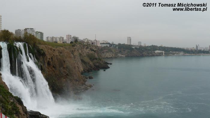 Antalya jest podobno jednym z ładniejszych miast Turcji, jest na tyle mała, że można ją zwiedzić w kilka dni. Wśród licznych hoteli i pensjonatów w oddali rysują się szczyty gór Taurus. Tutaj podczas krucjat zatrzymywali się krzyżowcy zmierzający do Ziemi Świętej. My niestety mamy tylko kilka godzin na zobaczenie Antalyi, więc w biegu staramy się zobaczyć to co warte jest obejrzenia w tym mieście, a więc Łuk Hadriana, pomnik Ataturka, Żłobkowany Minaret z niebieskich i turkusowych płytek ceramicznych. Na mnie największe wrażenie zrobiły małe uliczki ze sklepami, kawiarniami czy kebabami. Mnóstwo kwiatów, dywanów i pamiątek w tych urokliwych uliczkach. Uliczki starego miasta prowadzą nas do portu, gdzie rozciąga się wspaniały widok na miasto. Na zakończenie jedziemy zobaczyć jeszcze piękny wodospad, który robi niesamowite wrażenie. Niestety zaczyna padać deszcz – pierwszy podczas naszego pobytu w Turcji. Wieczorem idziemy pożegnać się z morzem i rano niestety wracamy do zasypanej śniegiem Polski. Po 2,5 godzinie z ciepłej słonecznej Turcji pozostało tylko wspomnienie. Czas ubrać zimowe kurtki i szaliki.