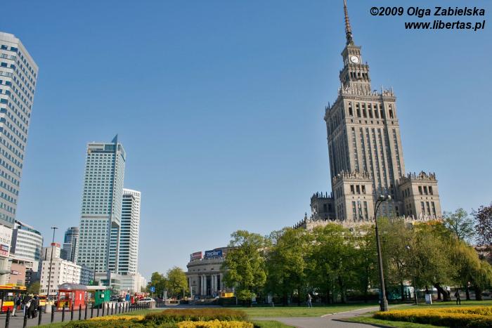 Zwiedzanie rozpoczynamy od Złotych Tarasów, centrum handlowego z ekscentrycznym dachem. Do gustu przypada mi jego falista struktura. W Złotych Tarasach odbywały się kiedyś "Rozmowy w Toku," lecz z powodu przeszkadzających ludzi, szybko zrezygnowano z nagrywania w centrum handlowym i powrócono do studia. Sklepy mamy na co dzień, więc szybko je opuszczamy i wyruszamy do Pałacu Kultury i Nauki. Budynek zauważalny z daleka, znacznie wyróżnia się w otoczeniu nowoczesnych biurowców.