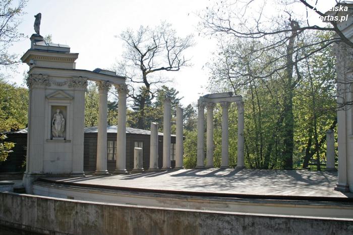 Zmęczeni przysiadamy na chwilkę, na widowni Teatru na Wyspie. Tym razem odbywamy podróż z malowniczej Wenecji do Grecji. Scena otoczona jest stylizowanymi na starożytność kolumnami. Widownia oddzielona jest kanałem wodnym. Kulturę śródziemną w Warszawie zawdzięczamy polskiemu architektowi Janowi Chrystianowi Kamsetzer.
