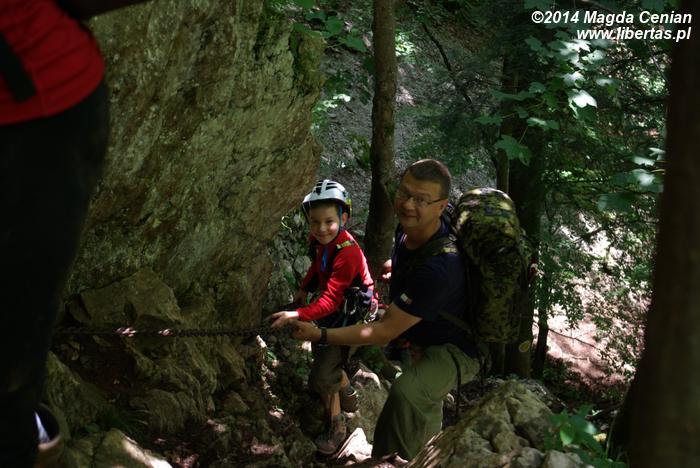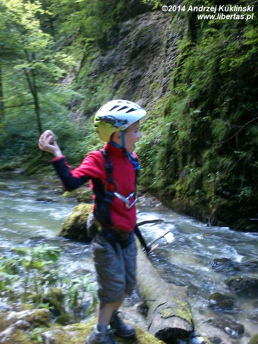 Do przejścia wąwozu zachęciły mnie rumuńskie filmy zamieszczone na Youtube, wyglądało wszystko nie łatwo, ale możliwie. Rzeczywistość okazała się jednak bardziej przygodowa. I niech Was nie zwiodą zdjęcia, na których widzicie, że wąwóz potrafi przejść 8-letnie dziecko. To jest bardzo wyjątkowe dziecko, zaprawione do górskich wycieczek, no i bez kasku i liny oraz umiejętności swego dzielnego ojca, nie dałoby rady.