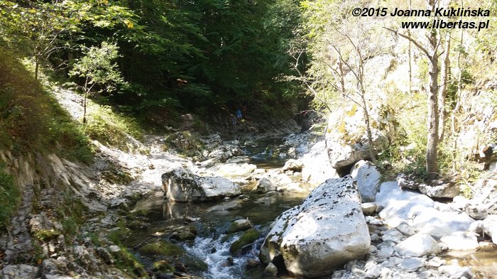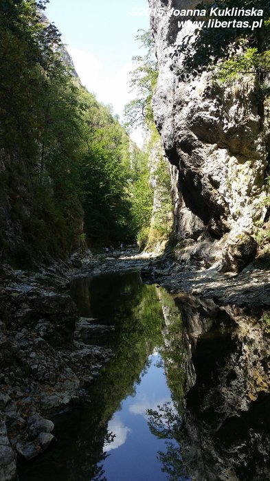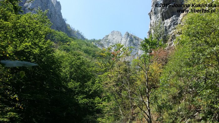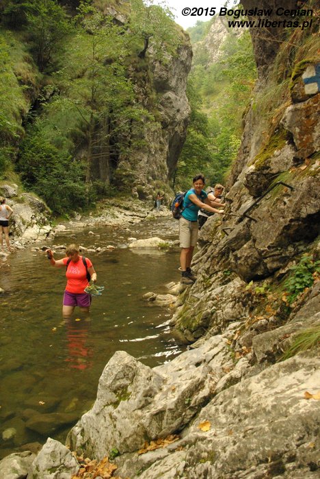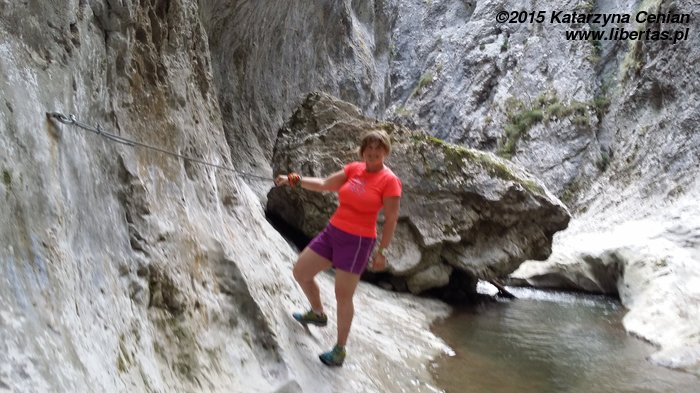 Część Rumunów traktowała wąwóz jak miejsce „na spacer w parku”. My w górskich butach albo przynajmniej w adidasach, a oni – w klapkach, a panie w baletkach i niedzielnych sukienkach. Szedł nawet facet z kosą złożoną w torbie. A drugi z rowerem. Musicie mi państwo uwierzyć na słowo, bo nie byłam w stanie zrobić zdjęcia – musiałam się jakoś z nim minąć.
