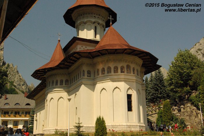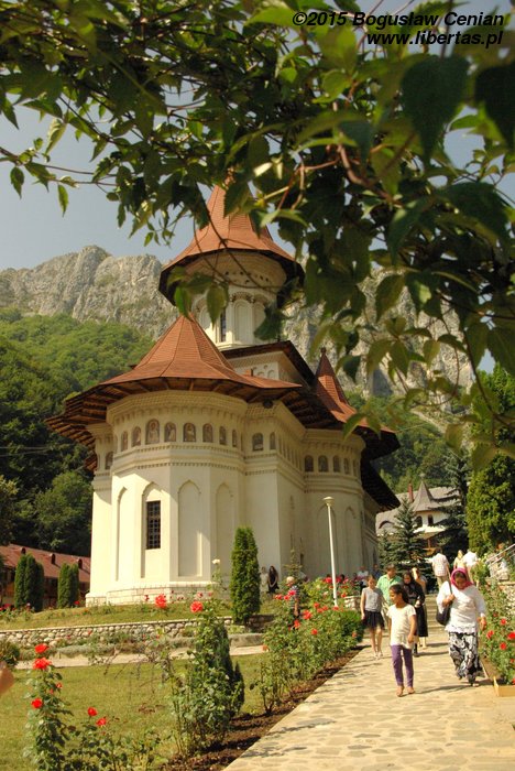 Zdjęcia obejrzane w galerii „Obieżyświata” i ich opisy sugerują, że miejsce jest odludne. Nie wszystkie polskie przewodniki zamieszczają informację o wąwozie Râmeț, więc zupełnie nie spodziewaliśmy się tłumów. Rzadko zresztą w Rumunii widzi się tłumy turystów w górach. Tu jednak czekała nas niespodzianka. Był 15 sierpnia, o czym zupełnie zapomnieliśmy ze względu na wakacje. Na wakacjach nie pamięta się nawet, jaki jest dzień tygodnia, a co dopiero dzień miesiąca. W pobliżu wąwozu znajduje się monastyr o tej samej nazwie. Ilość samochodów zaparkowanych po drodze i obecność policji uświadomiła nam, że to nie jest zwykły dzień. Na terenie monastyru odbywały się uroczystości religijne oraz coś, co wyglądało jak odpust (nie wiem, czy w kościele prawosławnym też odbywają się odpusty).