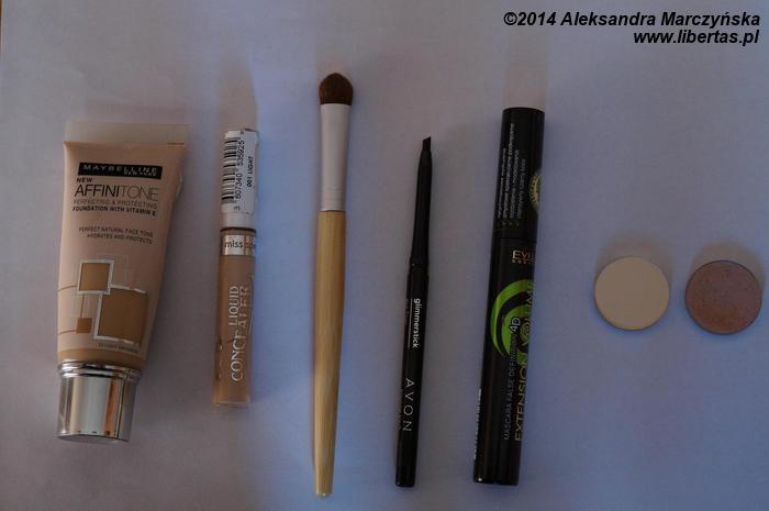 Przedstawiam efektowny i równocześnie prosty do wykonania makijaż oka, idealny na wiosnę. Potrzebny będzie: podkład, korektor, dwa cienie, czarna miękka kredka (w tym przypadku jest to wersja z wysuwanym rysikiem), tusz do rzęs.