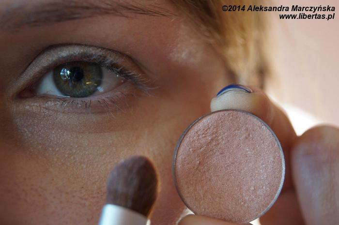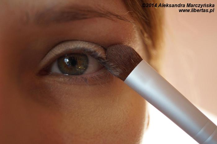 Cielisty matowy cień aplikujemy jako bazę, która utrwali docelowy cień, a jego kolor zyska na intensywności.