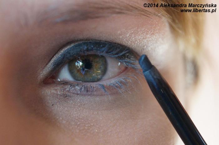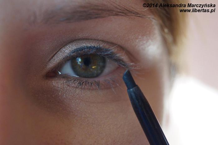 Miękką kredką rysujemy kreskę wzdłuż linii rzęs, podczas malowania, pomocne będzie lekkie naciągnięcie powieki. Możemy stopniować intensywność kredki, to od nas zależy czy będzie delikatnie zaznaczała linię rzęs, czy mocniej ją podkreślała.