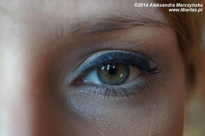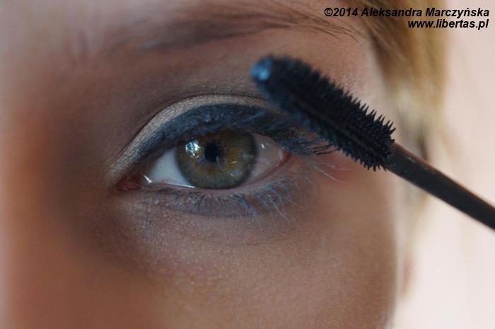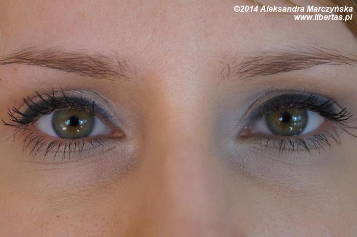 Rozcieramy kreskę, by zatrzeć jej granice, dzięki temu ładnie komponuje się z cieniem. Na koniec pozostaje wytuszowanie rzęs górnych i dolnych.