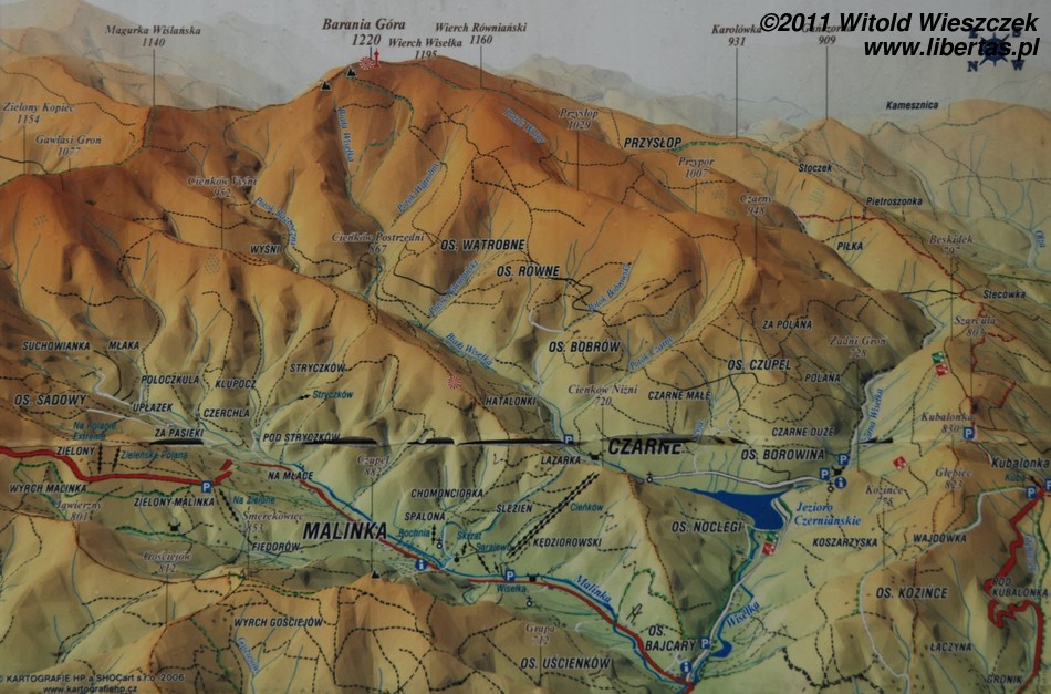 Szlak: Wisła Czarne – niebieski – Barania Góra – niebieski – Przysłop – czerwony – czarny – Wisła Czarne