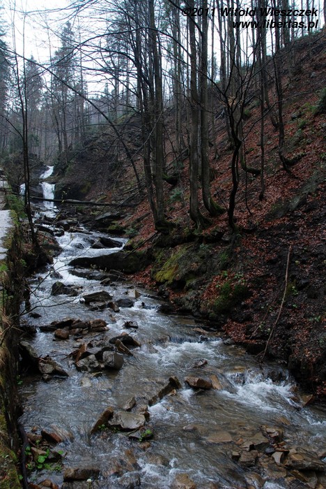 Niedługo później odpowiednia tablica poinformuje nas, że obok znajdują się Kaskady Rodła (Kaskady Białej Wisełki) – kilka wodospadów i rzecznych progów o wysokości od 0,5 do 5 metrów. Dwa najwyższe są jednocześnie najwyższymi wodospadami Beskidu Śląskiego.