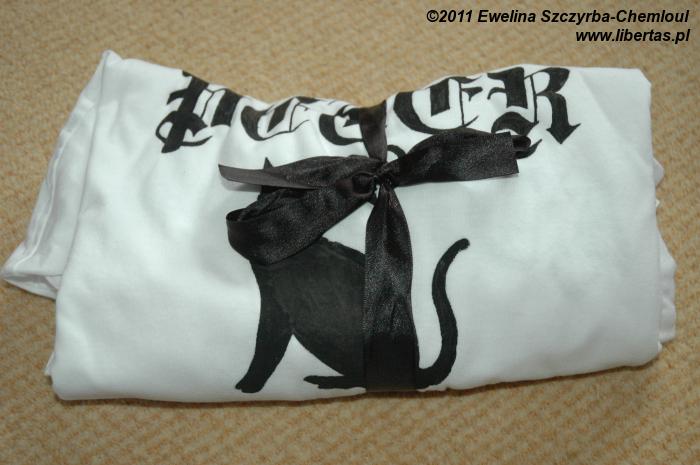 Zdradzę wam co ja zrobiłam. Miałam sprawę ułatwioną, kuzyna znam jak własną kieszeń. Wiem, że uwielbia ciężką muzę, glany i przebieranki w gotha. Na szczęście dla mnie, jego ukochana również. Jednym z prezentów były więc koszulki własnoręcznie malowane. Kupiłam bawełniane t-shirty (dla niej i dla niego), pogrzebałam trochę w Internecie, pobawiłam się ołówkiem i wyobraźnią i voila: oto one. Całość kosztowała mnie mniej niż 10 funtów.
