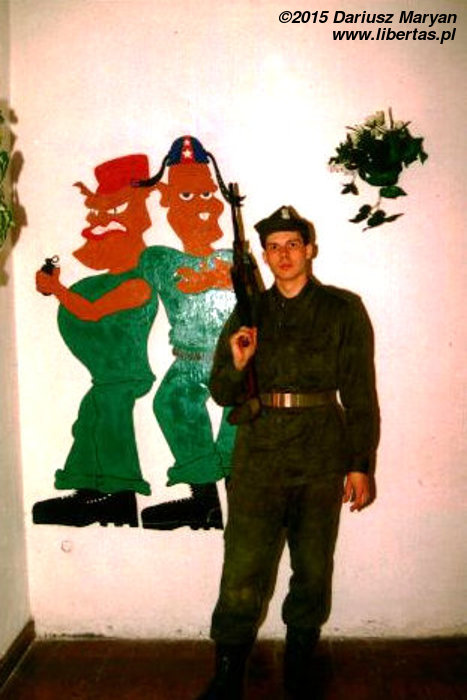 Spirytus z wolna zaczął się przegryzać, a ja przystąpiłem do sprzątania rejonów. Na korytarzu mogłem trochę porozmawiać z pozostałymi kolegami z fali. Dowiedziałem się, że służby podoficera dyżurnego i dyżurnego kompani pełnili na przemian żołnierze obu kompani. Były to bliźniacze kompanie, więc takie przemieszanie dyżurów było dopuszczalne. „Obleśniak” został oddelegowany do sztabu (pewnie pod tym wnioskiem podpisali się wszyscy), a „Rekina” przenieśli na kompanię samochodową. Tak więc „A.A.” i pozostałym dziadkom odpadły już trzy owieczki.