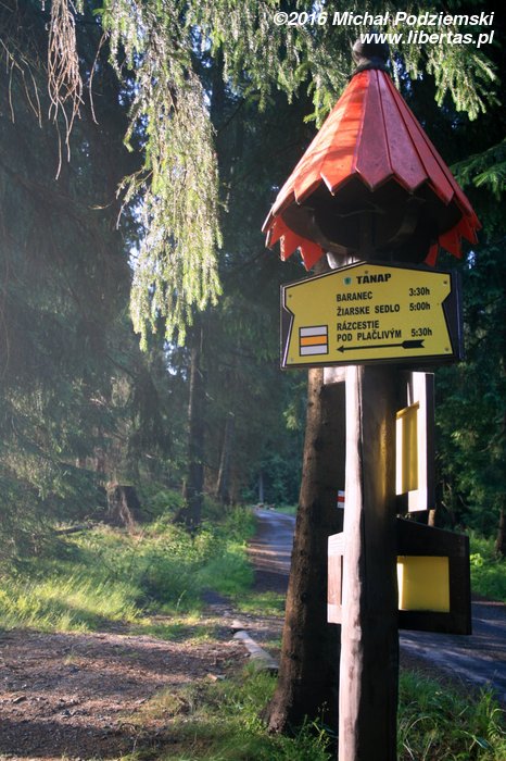Kierujemy się na Liptowski Mikułasz i tam odbijamy na drogę, prowadzącą przez Smreczany (Smrečany) i Żar (Žiar). Jedziemy nią aż do końca, do momentu, w którym miniemy ostatnie zabudowania i wjedziemy na spory, płatny parking. Na jego krańcu znajduje się tabliczka z opisem szlaków – nas interesować będzie żółty.