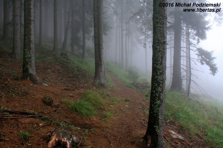 Dalej czeka nas jeszcze podejście nieosłoniętym już żadnymi krzewami terenem, otoczonym od prawej strony Doliną Tarnowiecką z potokiem Tarnowiec, który ma swoje źródło niewiele poniżej wierzchołka Barańca.