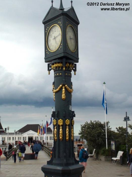 Pierwszy odcinek trasy przeszliśmy plażą. Gdy doszliśmy do mola w Ahlbecku, postanowiliśmy przejść się trochę przez miasto. Przy wejściu na promenadę powitał nas piękny secesyjny zegar ufundowany przez kuracjuszy w 1911 roku. Ahlbeck posiada szereg zabudowań w stylu klasycznym charakterystycznych dla kąpieliska nadmorskiego. Większość z tych budynków znajduje się wzdłuż nadmorskiej promenady. Wszystkie są odnowione i prezentują się naprawdę doskonale.