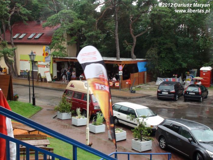 Nieczęsto mam okazję obserwować tak spektakularne zjawisko. Nad plażą świeciło słońce, a tam w oddali całe grupy chmur i padający deszcz. Można było zaobserwować całe ściany wody, po czym następowała krótka przerwa i kolejna ulewa. Widowisko z piorunami rozgrywało się na przestrzeni kilkunastu kilometrów, w bezpiecznej odległości od plaży. Burza zdawała się kroczyć razem z nami, ale był znacznie szybsza. Dzięki temu tym razem nam się udało i gdy dotarła w końcu do lądu, wyprzedziła nas o kilka ładnych kilometrów. Niestety jej ogon spowodował, że na około godzinkę chmury przesłoniły słońce, a tuż przed metą nieco pokropiło.