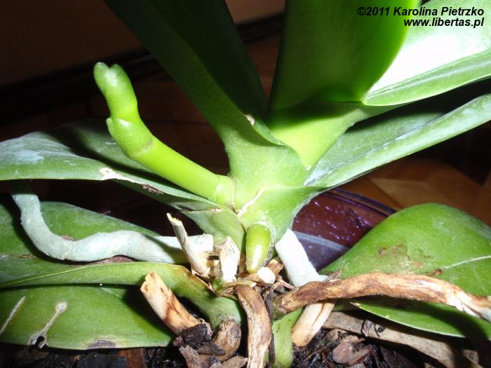 Kiedy kwiatostan przekwitnie obcinać się powinno pęd u samego dołu bądź, licząc na ponowne szybkie wypuszczenie pędu, nad trzecim oczkiem (od dołu). Generalnie phalaenopsis kwitnie co najmniej raz w roku. Jeśli oczekiwania na pojawienie się nowych kwiatów przedłużają się – można przenieść storczyka w ciemniejsze miejsce, ograniczając podlewanie. Może to spowodować zakwitnięcie po przeniesieniu do normalnych, odpowiednich warunków po około miesiącu.