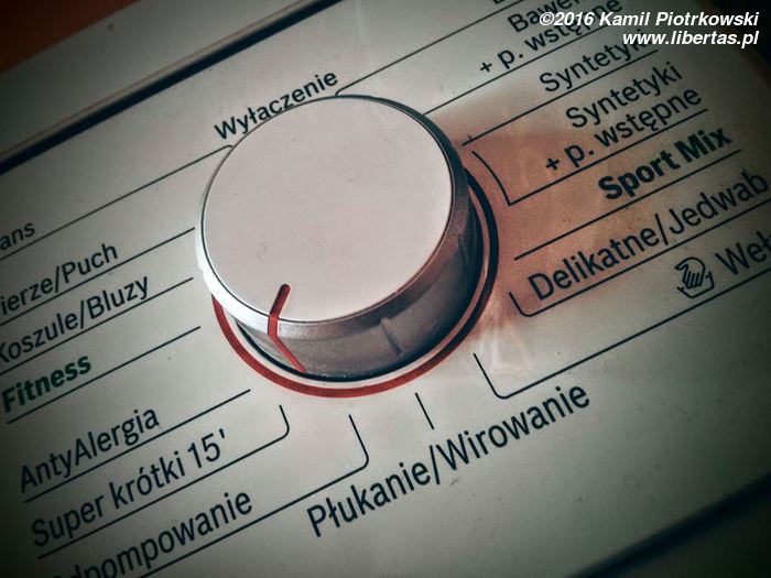 Suplement. Kusi mnie ten program fitness. Ciekawe czy wtedy pralka zacznie gadać głosem Chodakowskiej? „I raz, i dwa, świetnie, super! I raz, i raz...”. I wtedy spalasz kalorię od paczenia w obracający się bęben.