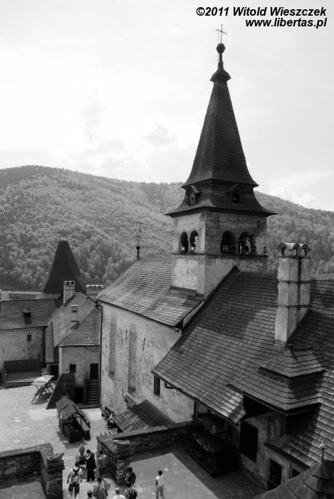 Niestety podczas naszej wizyty niedostępne dla zwiedzających były najwyższe części zamku górnego, skąd podobno roztacza się piękny widok na Tatry. Mogliśmy za to zwiedzić kaplicę zamkową w której pochowano Thurzonów i w której można zobaczyć między innymi piękny barokowy ołtarz.