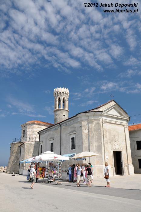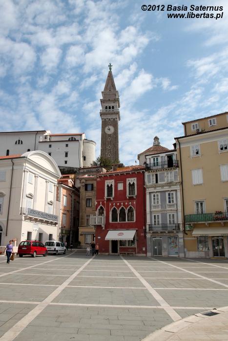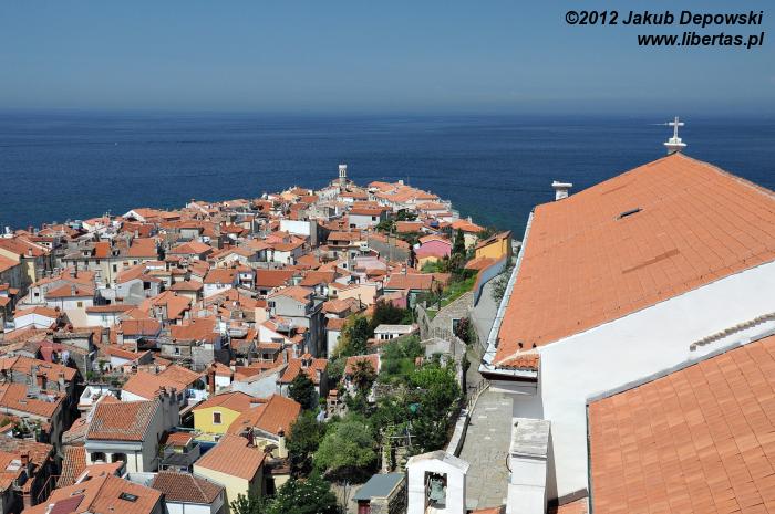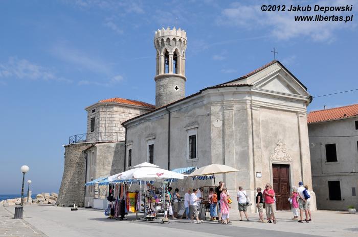 Losy Piranu splecione były przez wieki z Włochami stąd wszechobecny język sąsiada i specyficzna aura otaczająca miasteczko. Wizytówką starówki jest plac Tartiniego, gdzie większość turystów rozpoczyna zwiedzanie, gdyż właśnie tam ulokowany jest przystanek autobusu dojeżdżającego z parkingu. Wędrując wąskimi zaułkami miasta musimy koniecznie zobaczyć kościół Matki Boskiej Śnieżnej, kościół Franciszkanów, malowniczo położony kościół św. Klemensa oraz kościół św. Jerzego, na którego dzwonnicę można dostać się za niewielką opłatą, by podziwiać stamtąd piękno słoweńskiego i chorwackiego wybrzeża. Podobno przy dobrej pogodzie można z góry dostrzec nawet odległe sylwetki Alp Julijskich oraz Dolomitów.