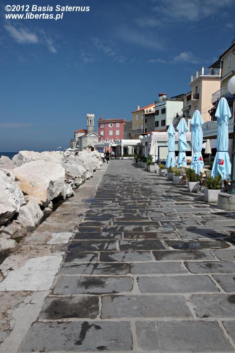 Atuty słoweńskiego wybrzeża znajdziemy jednak zdecydowanie gdzie indziej. Są nimi piękne, niewielkie miasteczka ulokowane malowniczo nad brzegiem morza. Perełką wśród nich jest bez wątpienia Piran, który mieliśmy szczęście odwiedzić przed sezonem, gdy nie cierpiał jeszcze na nadmiar turystów. Ta urocza mieścina jest całkowicie zamknięta dla ruchu samochodowego, więc jeśli przyjedziemy własnym pojazdem, zmuszeni będziemy zostawić go na płatnym parkingu, z którego do centrum dostaniemy się w kilka minut bezpłatnym autobusem. Niestety koszt parkingu nie jest mały i za kilkugodzinne „przechowanie” naszego samochodu zapłacimy około 6 euro.