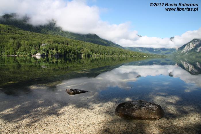 Amatorom miejsc bliższych naturze zdecydowanie polecamy jezioro Bohinj znajdujące się około 30 kilometrów na południowy-zachód od Bledu. Jego brzegi, poza wszelkimi atrakcjami typowymi dla wypoczynku nad wodą, mają wyjątkową zaletę – są doskonałą bazą wypadową w góry. Możemy stąd eksplorować pobliskie Góry Bohinjskie, a gdy zdecydujemy się na dłuższą wyprawę nawet Alpy Julijskie. Polecamy również spacer wokół jeziora, zwłaszcza wczesnym rankiem, gdy w niezmąconych wodach będziemy mogli dostrzec monumentalne alpejskie ściany. Wycieczka wzdłuż linii brzegu zajmie nam 2-3 godziny. Noclegu nad Bohinj najlepiej szukać w okalających jezioro lub też położonych w jego pobliżu wioskach – Bohinjska Bistrica, Ribčev Laz, Stara Fužina. Można też skorzystać z pięknie ulokowanego, lecz niestety dość drogiego pola kempingowego we wsi Ukanc.