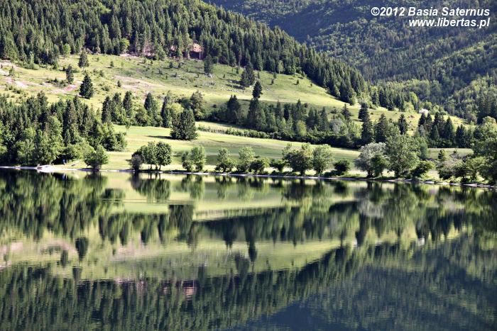 Tym, których pływackie ambicje z uwagi na średniej jakości wybrzeże miałyby pozostać niezaspokojone Słowenia oferuje coś w zamian – możliwość kąpieli w prześlicznych jeziorach z alpejskimi widokami w tle. Jednym z nich jest piękny, turkusowy Bled (Blejsko jezero), nad którego północno-wschodnim brzegiem wyrasta miejscowość o identycznej nazwie. Ciepłe wody jeziora oraz urok sanatoryjnego miasteczka mającego w sobie coś z klimatu „Czarodziejskiej góry” Tomasza Manna co roku przyciągają tysiące turystów. Uzdrowiskowa tradycja sięga tu aż połowy XIX wieku. Jezioro nie jest specjalnie duże. Okrążenie jego tafli to spokojna, sześciokilometrowa przechadzka, podczas której możemy podziwiać kościół Wniebowzięcia na wysepce Otok, kościół św. Marcina, a także dokładnie przyjrzeć się dumnie wznoszącej się nad miasteczkiem twierdzy (Blejski grad). Bled jest miejscem, gdzie zarówno amatorzy leniwego, jak i bardziej aktywnego wypoczynku znajdą coś dla siebie. W jeziorze można się kąpać, można bez przeszkód wypożyczyć łódkę albo kajak, a latem odbywają się tu liczne imprezy plenerowe. Niestety w sezonie musimy liczyć się z tłumami turystów i sporą drożyzną. Okolice jeziora, to chyba najdroższe miejsce, jeśli chodzi o ceny noclegów, w jakie zdarzyło się nam w czasie słoweńskich wakacji trafić. Mimo to warto nad Bledem zatrzymać się choćby przejazdem. To strony naprawdę ładne - nie bez przyczyny uważane za jedną z wizytówek Słowenii.