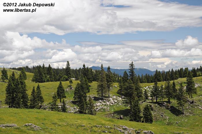 Drugim co do wysokości pasmem górskim w Słowenii są Alpy Kamnicko-Sawińskie. Niższe o kilkaset metrów od Alp Julijskich, ale w wielu fragmentach nie mniej od tamtych piękne i miejscami podobnie wymagające. Ich główna część, podzielona dolinami na kilka odrębnych masywów, oferuje wiele możliwości całodniowych wycieczek, z których każda, ręczymy za to, dostarczy niepowtarzalnych wrażeń. Do największych atrakcji należą: niełatwe ze względu na silną ekspozycję i olbrzymie różnice wysokości wspinaczki na najwyższy Grintovec (2558 m n.p.m.) i Planjavę (2394 m n.p.m.), obfitujący w niebywałe widoki szlak wiodący górnym piętrem Doliny Logarskiej oraz znacznie niższy, ale zaskakujący podróżników licznymi niespodziankami masyw Velikej Planiny. Osobom nie do końca pewnie czującym się w trudnym górskim terenie polecamy zwłaszcza opcję ostatnią. Sześciogodzinny spacer przez Gradišče - górujące nad okolicą, sięgające 1666 m n.p.m. wzniesienie, pozwoli nacieszyć się przyrodą, podziwiać wspaniałe, głębokie na kilkadziesiąt kilometrów panoramy i dokładnie przyjrzeć się wysrebrzonym słońcem, wapiennym ścianom najwyższych partii Alp Kamnicko-Sawińskich. Dodatkową atrakcją jest znakomicie zachowana w całej okolicy architektura pasterska. Liczne, ciągle będące w normalnym użytku, drewniane domy i szałasy sprawią, że porzucimy na chwilę wiek dwudziesty pierwszy i poczujemy się bohaterami odległych czasów.