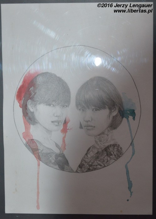 Jak przedstawiał Dyrektor Gagacki 26-latkę Izabelę Małagowską-Kurus, nie wiem. Tłum kłębił się wokoło. Wpatrywał się w urodziwą brunetkę, która jednocześnie i skromnością, i elokwencją przesłaniała momentami swoje prace rozwieszone ponad nowymi bibliotecznymi kanapami. Bukiet kwiatów wręczany, pachniało kawą i lekko unosiła się w powietrzu delikatna woń wina. Skromna i zwiewna jak artystka, jak pociągnięcie ołówka, pędzelka na kredowo białym papierze. Tak delikatnie układa się w tybetańskich klasztorach mandale. W ten sposób dobiera się każdy kolejny kwiat, gałązkę, zieloną roślinkę do bukietu w japońskich szkołach zen. Podobnie o namiętnym a nieśmiałym napięciu cięciwy pisał Eugen Herrigel w swojej „Zen i sztuka łucznictwa”. Która z tych emocji bardziej towarzyszy portrecistce? Co w niej dominuje? Skupienie i pewność, czy może subtelność i eteryczność, o czym przecież prawie jednoznacznie wskazuje czarna, niedokończona kreska, podobna do brwi, które u młodych kobiet jakby były kruche, mgielne, kończyły się nie wiadomo gdzie… A jak jest całkiem inaczej? Jeśli portrecistka zadaje sobie buddyjski koan, ba! znajduje go gdzieś świecie, w swojej pamięci, w obrazach przesuwających się w duszy, albo przed oczami, gdy jedzie pociągiem, tramwajem, leci samolotem, stoi w metropolii na czerwonych światłach, gdy przemykają portrety świata w telewizji, bądź zatrzymują na monitorach laptopów? Dłoń wykonuje ruch ołówkiem, pędzlem, piórkiem, rapidografem i zamiera na jakiś czas. Na godziny, na dni… Wówczas przełamuje się schemat, jak w „Bezdźwięcznym głosie jednej klaszczącej dłoni” Lies Groening, i bukiet kwiatów przybiera twarz Marylin Monroe, obrzęd parzenia herbaty staje się fragmentem nowojorskiej kawiarni, gdzie czerwone, jakby z japońskiej mangi, ledwie nakreślone tło ma podkreślać jazz be-popu, bądź fascynację Andym Warholem, albo wspomnienie kiedyś przeczytanej lub obejrzanego „Śniadania u Tiffany’ego”.