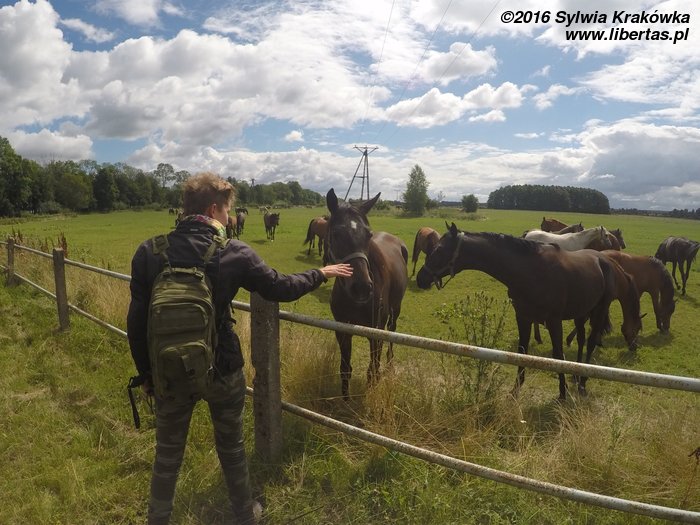 Czwartego dnia wstępujemy do zagrody pokazowej żubrów. Zwierzęta początkowo nas ignorują, bo są zajęte konsumpcją śniadania. Nasza cierpliwość zostaje jednak wynagrodzona. Podziwiamy ogromne osobniki, które kiedyś zostały niemal wybite. Żyją tu także żubronie, łosie, dziki i wilki. Żubra z pewnością nie chciałabym gdzieś spotkać na leśnym szlaku. Wystarczy mi podziwianie go zza ogrodzenia. Kierujemy się w stronę Puszczy Knyszyńskiej – znajduje się tu jeden z największych parków krajobrazowych w Polsce. Właśnie w jego okolicach kręcono takie znane, rodzime filmy, jak: „U Pana Boga za piecem”, „U Pana Boga w ogródku”, „U Pana Boga za miedzą”. Między innymi po obejrzeniu tej trylogii, zaczęłam marzyć o podlaskiej wyprawie.