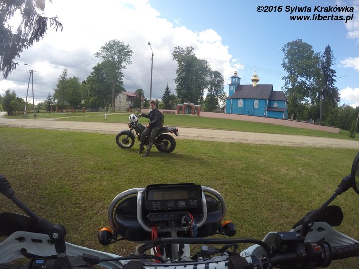 Wraz z mężem na Hondzie XR 250 Baji, wyruszyliśmy z Górnego Śląska wczesnym rankiem lipcowego dnia. Pogoda nie sprzyjała. Było zimno i deszczowo. Po 550 km udało nam się dojechać do miejscowości Prehoryłe w województwie lubelskim. Niedaleko stąd, rzeka Bug z Ukrainy wpływa do Polski, wije się polsko-ukraińskim, a następnie polsko-białoruskim pograniczem, by w końcowej fazie swojego biegu połączyć się z Narwią. Akurat tam trafiamy na lokalny festyn wędkarski, czyli na święto suma. Następnego dnia wjeżdżamy na Nadbużankę, czyli drogę lokalną o numerze 816, która przebiega tuż przy granicznej rzece. Szosa nie posiada jednak nawierzchni w dobrym stanie. Nie jest to problem dla naszych motocykli enduro. Odwiedzamy Sobiborski Park Krajobrazowy i położony w tamtejszych lasach, teren byłego, nazistowskiego obozu zagłady. Mijamy nieco zatłoczoną Włodawę. Odwiedzamy także prawosławny klasztor w Jabłecznej. Nocujemy w Sławatyczach. Do naszej dyspozycji drewniany domek, gdzie na parterze mieściła się kiedyś... pizzeria. Zachował się nawet piec do wypieku znanego na całym świecie smakołyku.