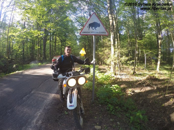Nas, mieszkańców rozbudowanego Górnego Śląska, urzeka tutejsza przestrzeń. Niewiele tu zabudowań, sklepów, restauracji. Mała pojemność zbiornika paliwa mojego motocykla, wymusza częste postoje na stacjach benzynowych. Podlaskie drogi to motocyklowy raj. Piaszczyste, szutrowe, lub wąskie asfaltowe biegną przez lasy, mokradła, niewielkie wsie. Mimo zmęczenia ciągle jedziemy. Chłoniemy krajobrazy. Spotykamy wielu rowerzystów, bo wyznaczono tutaj wschodni szlak rowerowy, który liczy sobie aż 2000 kilometrów. Może i nam uda się go kiedyś pokonać na jednośladach bez silników. Wracając do relacji, odwiedzamy Grabarkę – święte miejsce prawosławia w Polsce. Znajduje się tu tysiące wotywnych krzyży. Dojeżdżamy do Białowieży, gdzie udaje nam się znaleźć wolny pokój w zajeździe. Późnym wieczorem spacerujemy po niewielkiej miejscowości. Dookoła tylko puszcza. Dopiero nocą rozgrywa się koncert leśnych dźwięków.