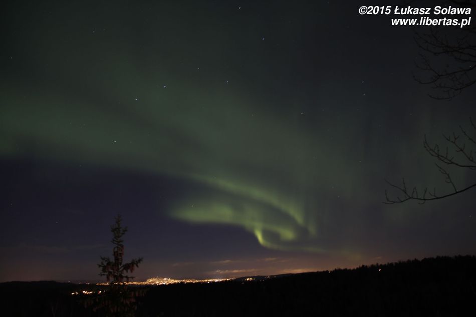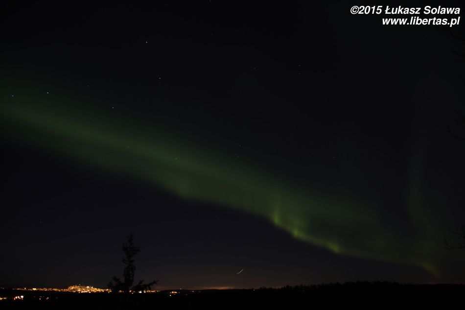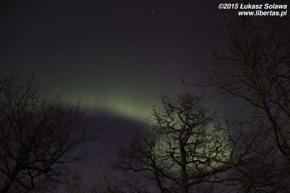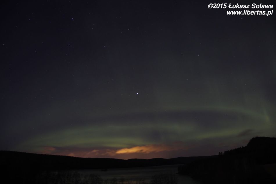 Aurora była widoczna przez około trzy godziny, jednak najbardziej widowiskowa była koło godziny 22. Na niebie obserwowaliśmy kręgi, kurtyny, spirale, fale czy serpentyny. Ludzie, dla których zorganizowałem to mini „zorzowe” safari (jeżdżenie między kilkoma sprawdzonymi punktami widokowymi) byli zachwyceni, zwłaszcza że obserwowali to zjawisko po raz pierwszy. Zachęcam do obejrzenia zdjęć.